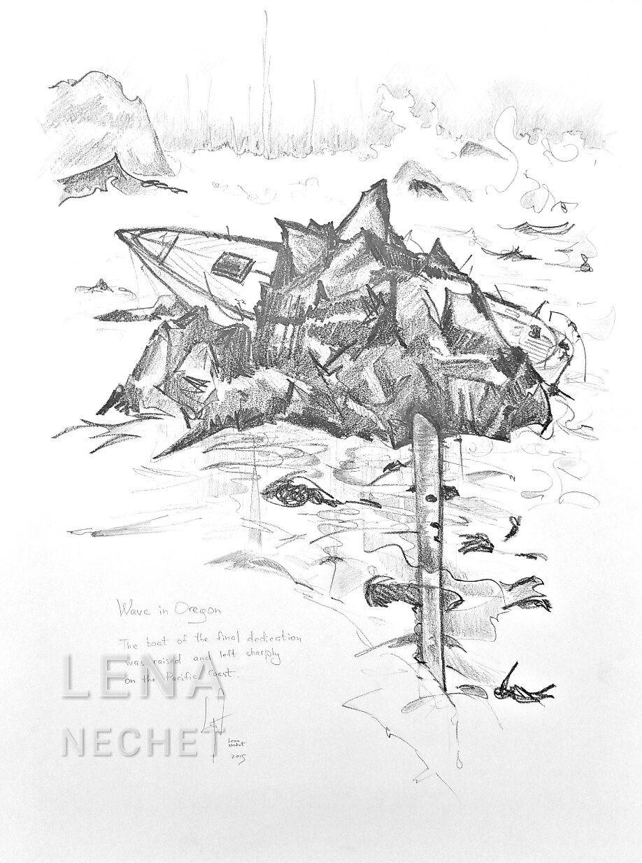 This is a boat I knew, crashed by the earthquake-tsunami in Japan in Oregon in 2011. I finished the drawing in 2015. It was awful to know that the beautiful creation was destroyed. The boat was swept out to sea and crashed by the rocks.