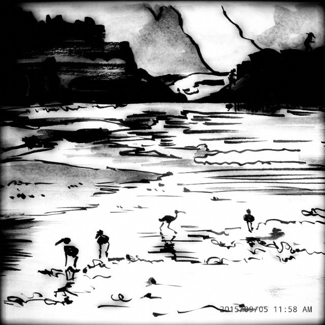 - Sketchbook pages, large figure sketches, gesture drawing, anatomy studies, urban sketching, blueprints, underpainting, and work in progress.